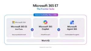 Microsoft heeft officieel Microsoft 365 E7 aangekondigd, een nieuwe enterprise-suite waarin AI, security en identitybeheer worden gecombineerd. De suite, door Microsoft aangeduid als de Microsoft 365 E7 Frontier Suite, wordt naar verwachting algemeen beschikbaar op 1 mei 2026 en krijgt een richtprijs van $99 per gebruiker per maand.